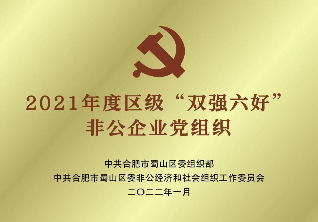 2022年1月,获评合肥市蜀山区“双强六好”荣誉称号。 双强六好是指非公有制企业和社会组织双强:发展强、党建强;六好:生产经营好、企业文化好、劳动关系好、党组织班子好、党员队伍好、社会反映好。(合肥公考行业唯一)